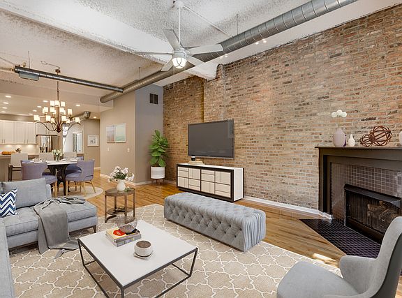 Chicago city living at its best! Rare opportunity to live in this gated, fully renovated and turn-key 2200 sq loft-style townhome duplex featuring 4 bedrooms and 2.5 remodeled baths. This special property endlessly impresses with a newer extra-large private and maintenance-free Trex deck with beautiful lighting scheme, newly remodeled spa-like marble master bath and guest bath, updated gourmet kitchen with new white quartz countertops and backsplash, newer HVAC and water heater, roof, hardwood floors throughout, designer fixtures throughout, rare 14'+ soaring ceilings, freshly painted, and the list continues! This property has been completely professionally designed and updated. Also included are 2 garage parking spaces, storage unit, common patio, and access to the common roof deck with stunning views of downtown! Short walk to the train and very close to neighborhood restaurants, bars, and parks. Absolutely nothing left to do but move in and start enjoying this fantastic property!