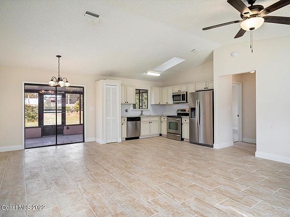 This home qualifies for an interest rate buy down up to 3% as well as downpayment & closing cost assistance of up to $25,000 through the hometown heroes program. Nicely updated 3 bedroom, 2 bath, 2 car garage home in Palm Bay. New flooring throughout with tile in the living areas and carpet in the bedrooms. Brand new kitchen with solid wood cabinets, granite countertops and stainless steel appliances. Both bathrooms have been updated. 4-point inspection and insurance quote are attached in documents section.