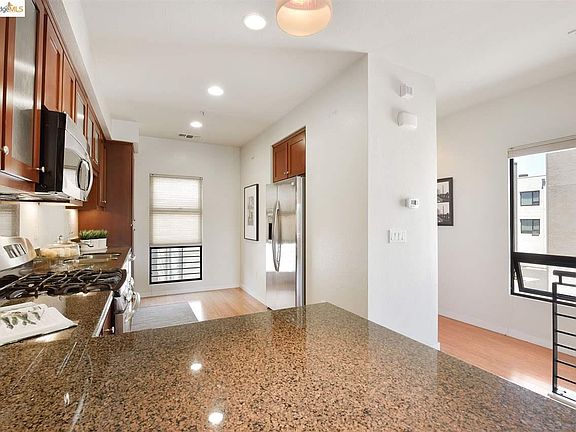 Welcome home to this bright, sunny and sophisticated home. Modern features include level entry from the street or walk in garage, kitchen, living area and a powder room on the second floor. And then up to two very private master bedroom suites. There is also a bonus room at street level for a work out room or home office. And this corner unit has surprising views of the Oakland Hills in the distance. Convenient access to public transportation. Downtown Oakland and San Francisco are just moments away.