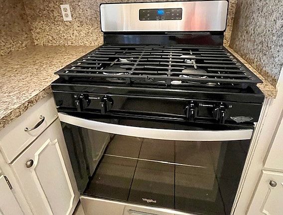 Large fenced backyardSingle carportBrand-new gas rangeFormica countertopsCozy screened front porchNew laminate flooring