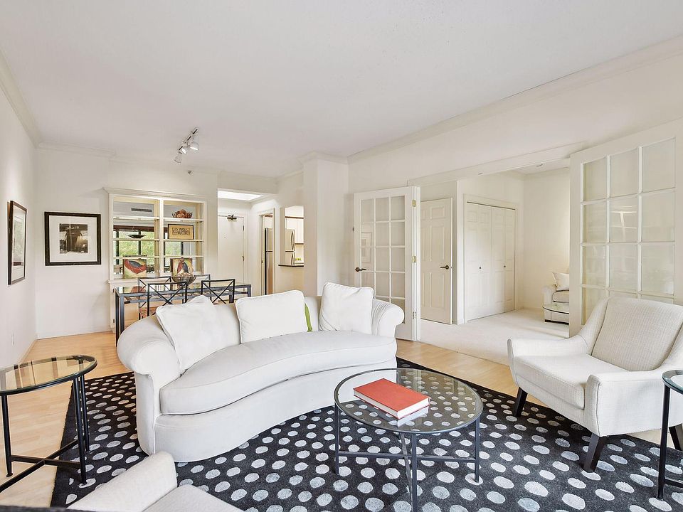 Very fine lovely 2 bedroom 2 bath city home. Elegant French doors lead to 2nd bedroom/den. All light and bright decor, 9 foot ceilings plus fresh paint and new carpet. Amazing storage w/additional storage locker (5x11) on the same floor. Loring Green's amenities are unsurpassed. Ideal location stroll to all downtown has to offer.