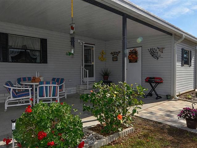 Simply Beautiful. This 2/2 Golf Course Home is mostly furnished and in pristine condition. Enjoy mornings on your PAVER STONE PATIO while watching the golfers on the number #8 tee. Spend afternoons on your spacious TILED FLORIDA ROOM. This home features CATHERDRAL CEILINGS, LAMINATE FLOORS, SKYLIGHTS, and a kitchen with TONS OF CABINETS. Tiled indoor laundry with folding table and more storage. DUAL VANITY MASTER BATH. New Roofover in 2001. AC in 2005. Located in 55+ community where you OWN Y...