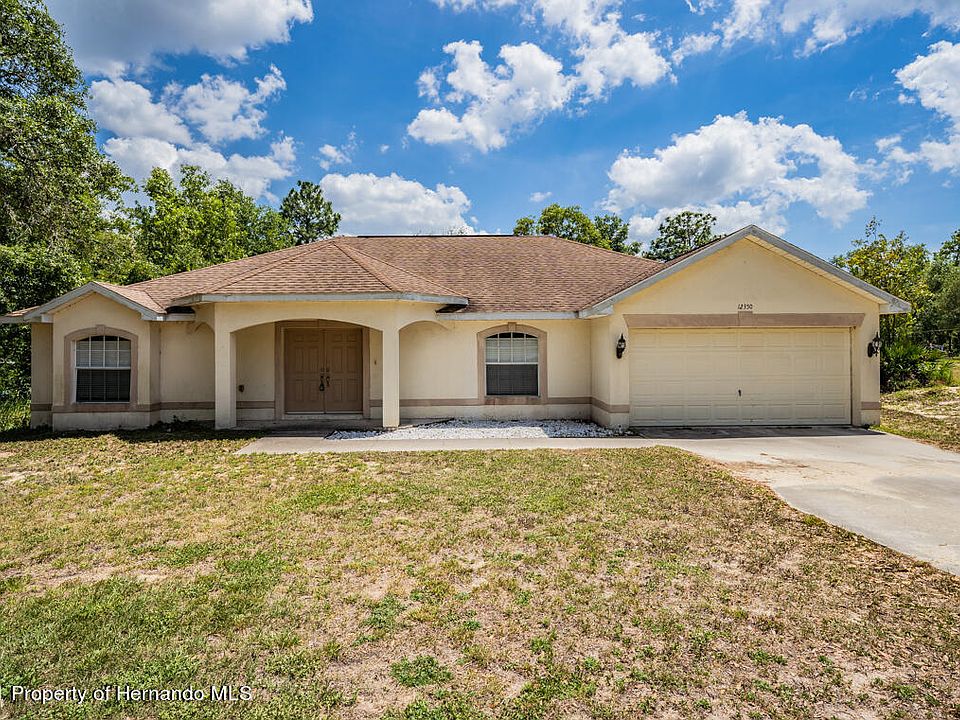 Active w/ contract - One or more photo(s) has been virtually staged. One story 3 Bedroom + Flex / 2 Bathroom / 2 Garage Home on a Paved Road in Royal Highlands.*NEW ROOF COMING SOON* Double Door Entry, Bright & Open, Split Floor Plan with Soaring Cathedral Ceilings situated on Oversized Almost ½ Acre Homesite. Formal Dining and Living can be used in a variety of ways. Spacious Kitchen w/ Plenty of Counter Space, Cabinets, Breakfast Bar, Pantry and Casual Dining Area. Sliders Lead out to Large, Private and Fully Fenced-In Backyard w/ Above Ground POOL. Spacious Owner's Retreat with Walk-In Closet, Dual Sinks, Dual Walk-In Shower with separate Soaking Tub Facing A Beautiful Fireplace. Inside Laundry complete with Washer & Dryer. Amazing location if you are looking for a nice area not too close to neighbors but within a few miles to shopping, dining, hospitals, the Weeki Wachee River, boat ramps, beach and many other area amenities. NO HOA or CDD Fees! Don't wait, schedule your private tour today.