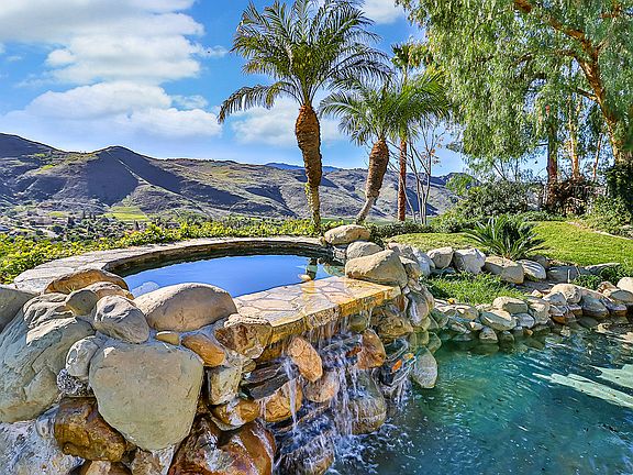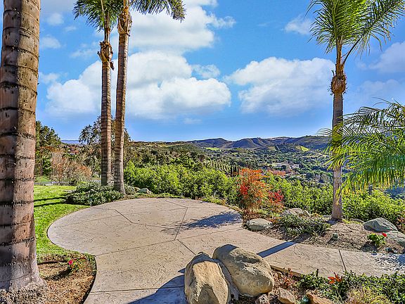 Enjoy spectacular panoramic views from this single story Bridlewood home! Meander the front walkway lined with palm trees and enter into this spacious and inviting home with 4 bedrooms, office, 3 baths and views from almost every room. Enter to an open and airy Living Room featuring vaulted ceiling and fireplace with adjacent Dining Room. Enjoy the remodeled Kitchen with wood cabinets, large center island, and granite countertops that opens to the Family room with French Doors. Dine al fresco on the outstretched patio with portico and outdoor BBQ or find your calm in the spa, overlooking the pond. Producing avocado tree orchard with over 100 trees for fresh guacamole and delectable salads all year long. Retreat to the Master Bedroom with its stunning views and sitting area. Remodeled Master Bathroom features two separate vanities, soaking tub, beautiful shower and two large cedar closets. Three other bedrooms are nicely sized with updated bathroom and 3 car attached garage. RV access and a community that includes equestrian trails, arena and picnic area. Single story homes with views like this don't come around often so seize the day and live where you dreamed of living!