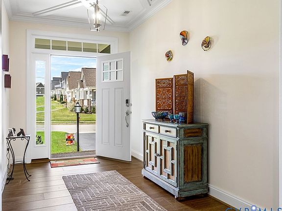 Don’t miss this one with the water view! Move-in ready, low-maintenance living in Readers Branch. Impressive upgrades make this home better than new construction. The Fulton Terrace model features an open-concept floor plan, high ceilings, luxury laminated wood flooring and stylish mouldings throughout. The kitchen has granite countertops with farmhouse sink, a spacious island, pendant lighting, pantry, KitchenAid appliances and gas range with exhaust hood. The adjacent room could be used as a formal dining room or a convenient first floor office. The family room has a Twilight see-through gas fireplace and French doors that open to an outdoor deck with a captivating water view. It’s the perfect space for entertaining, coffee or cocktails. The 1st floor primary suite with spa bathroom is truly an oasis. Enjoy the heated bathroom floor, Moen digital shower controls and incredible walk-in closet updated by the Closet Factory. The first floor boasts a second bedroom along with a full bathroom. The laundry room is conveniently connected to the primary bedroom walk-in closet and has been outfitted with custom cabinets. Downstairs you’ll find a huge rec room with a wet bar, beverage fridge, accent lighting and quartz countertop. The French doors open to a covered patio and the backyard lawn. Also in the basement, there’s a private third bedroom and full bathroom. Two unfinished rooms offer an abundant amount of storage and the possibility of finishing off for more living space. Special features and recent upgrades include a new HVAC system in 2025, Generac whole house generator, Rinnai tankless water heater, sump pump, plantation shutters, recessed lighting, custom closets, outdoor fireplace and Control4 smart home system. Relax while the HOA handles the lawn care, landscaping, trash & recycling. Readers Branch offers amenities such as walking paths, clubhouse and pickleball courts in a tranquil setting just minutes from Short Pump and easy access to I-288. Come check out this luxurious and beautifully updated home.