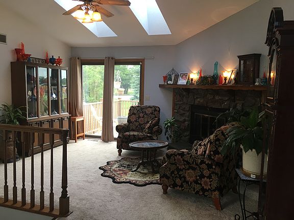 DON'T MISS THIS ONE! SO MUCH ROOM FOR A LARGE FAMILY - IT IS DECEPTIVELY SMALL FROM THE FRONT VIEW. LARGE MASTER BEDROOM WITH WALK-IN CLOSET AND ATTACHED BATH. SUNKEN LIVING ROOM BOASTS VAULTED CEILINGS AND A LARGE BAY WINDOW FOR PLENTY OF LIGHT. TOTAL OF THREE SKYLIGHTS IN MAIN LIVING SPACE, AS WELL AS A BEAUTIFUL STONE FIREPLACE WITH EXPANSIVE MANTEL AND GAS LOG INSERT. GUEST BATH UPGRADED TO INCLUDE STANDING HEIGHT VANITY AND NEW FLOORING. HOME OFFICE SPACE INCLUDES A PRIVATE ENTRY DOOR. SPACIOUS 3 CAR GARAGE WITH NEW OPENERS. WALK OUT LOWER LEVEL INCLUDES SUN ROOM FOR 4 SEASONS ENJOYMENT, TWO ADDITIONAL FAMILY ROOM SPACES, FULL BATHROOM, AN ADDITIONAL BEDROOM, AND TWO LARGE STORAGE ROOMS. LAUNDRY HOOK-UPS IN BOTH UPPER AND LOWER LEVEL. LARGE STORAGE SHED HAS DOUBLE DOORS AND A SKYLIGHT. PARK-LIKE VIEW OFF THE TWO-TIERED BACK DECK.