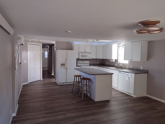 This totally renovated manufactured home is located at Johnson Siding with access to 500 feet of Rapid Creek. There are 8 other rentals with a total of 11 tenants on this 3 acre property and is listed as a 55 or older community. 15 minute scenic drive to downtown Rapid City. All utilities, water, sewer, power, yard maintenance and snow removal along with limited WiFi are included in the one year lease. The interior is painted drywall with vinyl plank floors. Open living, kitchen with island and dining area has a 12 foot glass area facing Rapid Creek with an open deck. Walking distance to Johnson Siding General Store and equal distance to Custer, Deadwood and the airport make this a great center point to live. Very quite neighborhood within the Black Hills National Forest. Tenants have exclusive access to 500 feet of Rapid Creek with a 100 foot cliff on the back side. Micro climate in this area allows for warmer daytime temperature in the winter and a lot less wind. Life is short so enjoy where you live. Off street parking plus a single car carport. Lease is for one year. Cleaning/damage deposit is due on signing. Landlord pays water, sewer, garbage, public WiFi, yard mowing and snow removal on main road areas. Again, this is a 55 and older community.