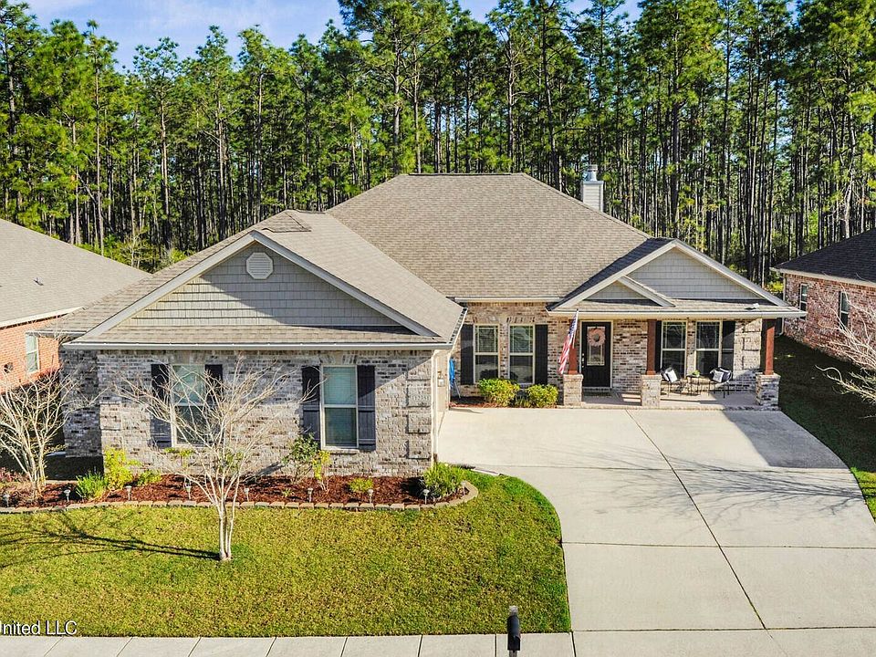 Stunning home in N Woolmarket School District w a peaceful neighborhood setting amongst the trees of the bordering Desoto National Forest. This 4 bed has 3 FULL baths and features a courtyard 2 car garage, formal dining or flex room, living room with gorgeous fireplace and kitchen featuring GAS stove, granite counters and stainless appliances. Hardwood floors throughout the main living space is a rare find!! Relax in the private backyard with views of the forest beyond. Less than 15 mins to Promenade and only 20 mins to Keesler.