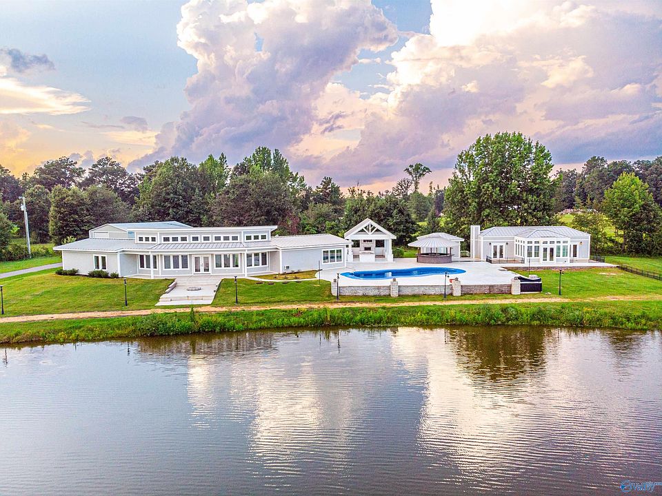 Nestled on an expansive 24.87 acre lot, this magnificent property encompasses a contemporary-style masterpiece that will captivate any buyer. Boasting a guest house and shop, this home is designed for indulgence and convenience. Relax and unwind in the sauna or entertain guests in the outdoor living area, complete with an outdoor bar and inground pool and hot tub that overlooks the lake. The main house features 2 fireplaces, creating a warm and cozy atmosphere. With a contemporary style that exudes elegance, this one-of-a-kind home is sure to impress. Don't miss the 8 acre lake. The kitchen features a wine room and the master suite features a storm room, walk in shower & copper soaking tub.