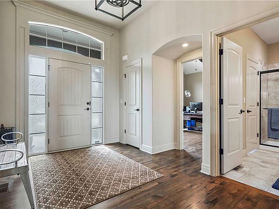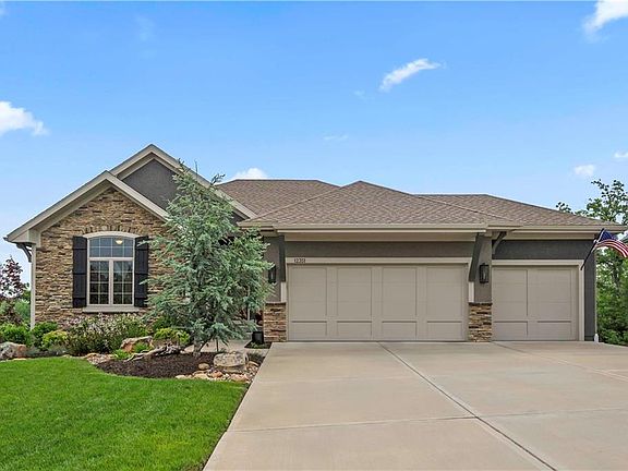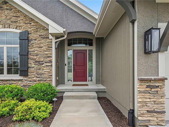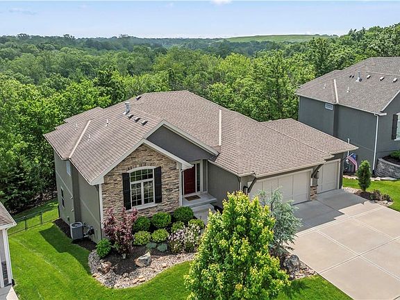 SHOW STOPPER REVERSE WITH AMAZING VIEWS BACKING TO GREENSPACE ON A QUIET CUL-DE-SAC! Warm and inviting open floor plan with GORGEOUS HICKORY Hardwood Floors in the Kitchen, Dining, Great Room and Primary Bedroom flowing seamlessly! Great Room has focal floor to ceiling stacked stone fireplace! Kitchen that is sure to please the chef showcasing stained cabinets, granite countertops, huge eat-in island, walk-in pantry and stainless steel appliances including gas oven and built-in microwave. 2 Amazing Covered Decks to enjoy the private treed backyard backing to creek. Access upper from both the dining room and primary suite. Generous primary suite includes corner whirlpool tub, separate shower, double granite vanity and generous walk-in closet conveniently leading to laundry room! 2nd bedroom on this level also has private bathroom access, walk-in closet and built-ins! FULL Finished Walk-out Basement has Family Room and Rec Room complete with wet bar. 2 more bedrooms and 3rd full bath complete this space. There is still a large unfinished space perfect for additional storage. All of this in a RODROCK Community featuring a 50' Waterfall Entrance, Zero Entry Pool, Water Park, Playground, Picnic Areas and Sports Courts including Basketball and Pickle Ball. Great location just minutes to Lake Olathe, Ernie Miller, dining, shopping and major highways. WELCOME HOME!