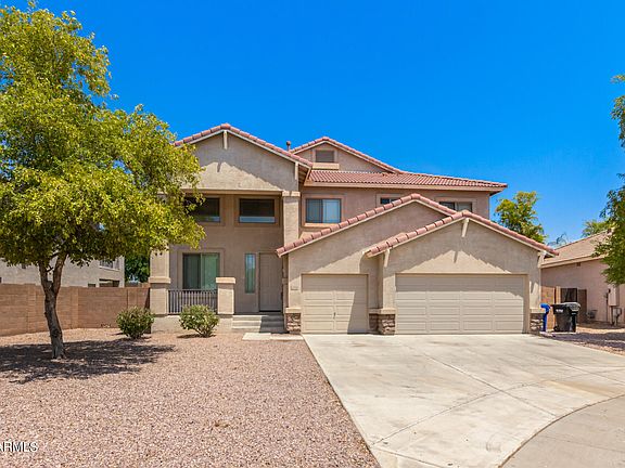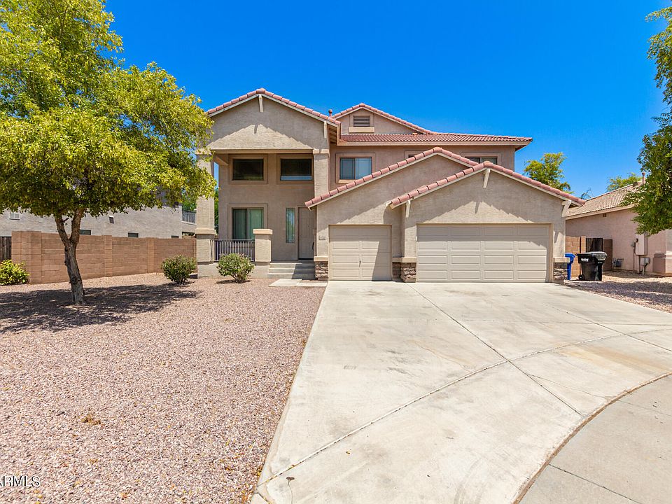 Experience comfortable living! This lovely 4-bed, 3-bath residence is peacefully located on a cul-de-sac! A 3-car garage, low-maintenance front yard, & inviting front porch creates an impressive curb appeal. Discover a light-filled living/dining room where plush carpeting & tile flooring coexist harmoniously. The family room displays wood-look flooring & seamless access to the backyard, perfect for indoor-outdoor living. The eat-in kitchen boasts paneled cabinets, matching appliances, recessed lighting, a pantry, & a center island. You'll also find a cozy loft ideal for an office. The main bedroom has a private bathroom w/ dual sinks & a walk-in closet for your storage needs. Continue onto the backyard showcasing a covered patio & ample space for your private oasis. Don't miss it!