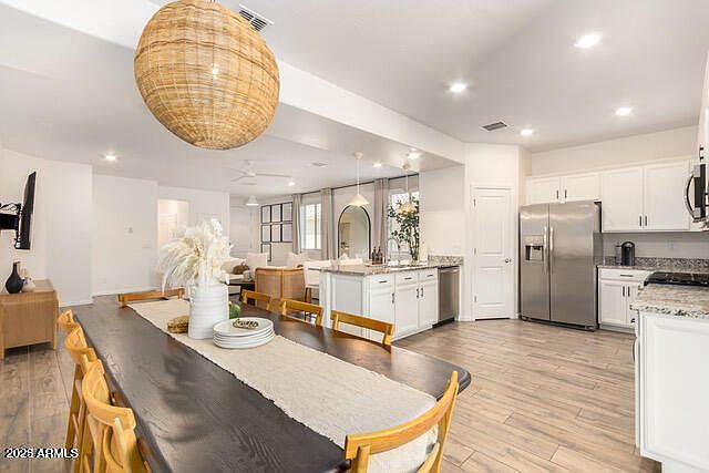 ASSUMABLE FHA LOAN AT 3.25%! $2,500/monthly! $600 cheaper per month than today's rates! Welcome to this stunning, 4-Bedroom home in a prime Glendale Location! Built in 2019, this like-new, 1,800 SF home is packed with upgrades. Smart home features include a whole-home RING security system with VIDEO doorbell and NIGHT cameras, SOLAR landscape night lights and an energy-efficient TANKLESS hot-water heater. An EPOXY garage floor, 240V/50Amp in garage for EV charger, faux WOOD blinds throughout & an OWNED SOFT WATER system adds benefits others don't have! Inside you'll find 9-foot ceilings, an open-concept, split bedroom floorplan (for ultimate privacy), wood-look TILE flooring & abundant natural light. The stylish kitchen has upgraded white cabinetry, GRANITE countertops, stainless steel appliances, walk-in pantry, eat-in island & REVERSE OSMOSIS water system. The spacious primary suite features a walk-in closet, private toilet room, raised vanity, large walk-in shower & dual sinks. The oversized spare bath has Jack & Jill doors, raised vanities & double sinks - perfect for guests! CUSTOM light fixtures throughout add a touch of elegance & the backyard is a dream with TURF, pavers, covered patio, gas stub for grill & a rolling PROJECTOR screen! Plus, the neighborhood greenbelt & playground are just steps away! Not to mention the location is just 10 minutes from Westgate, State Farm Stadium, Desert Diamond Casino & Luke Air Force Base! Plus the future VAI RESORT and MATTEL THEME PARK! This move-in ready home shows like a model, schedule your showing today! (PS: BACK ON MARKET! BUYER'S LOAN FELL THROUGH 4 DAYS BEFORE CLOSING! It's a great home!) PRICED BELOW THE APPRAISED VALUE FOR A QUICK SALE!