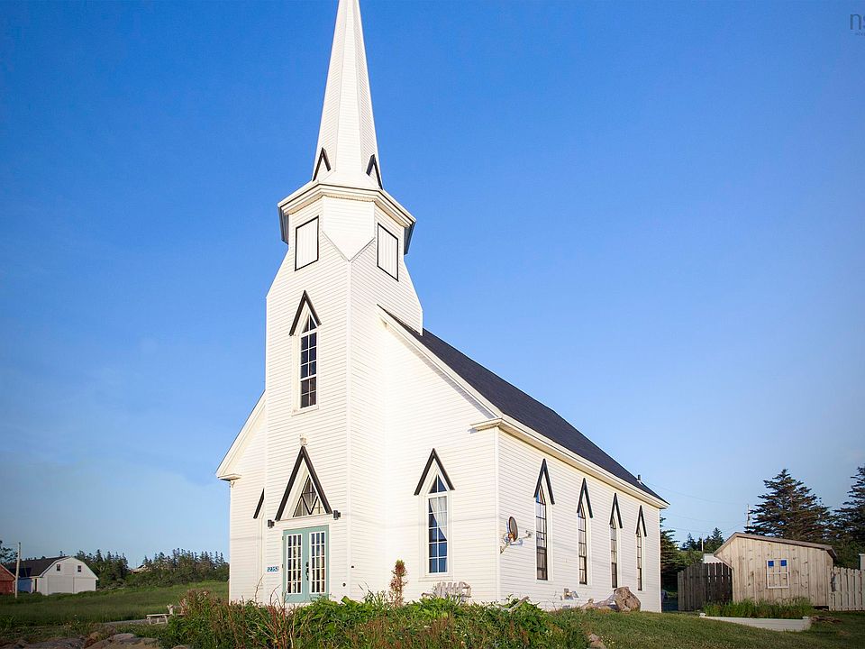 Charming, one-of-a-kind coastal retreat in picturesque Port George, just moments to nearby amenities of Middleton/CFB Greenwood. This fully furnished, fully renovated 3-bed, 1-bath former church offers breathtaking, unobstructed ocean views and is just steps from the beach. Currently operated as a successful vacation rental, this property is move-in ready and available for a quick closing - perfect as a year-round home, vacation getaway, or investment. Thoughtful upgrades since 2012 include a new well & septic, improved insulation, some windows, 200-amp electrical, plumbing, paint, etc, all while preserving the original character including the altar and hardwood floors. Other additions include a new front door (2023) & concrete steps (2023), new 24k-BTU heatpump (May 2025), a cozy pellet stove, and a wired, insulated shed. Fibre internet. Don’t miss this rare opportunity to own a truly heavenly slice of Nova Scotia’s coastline; opportunities like this are once-in-a-lifetime!