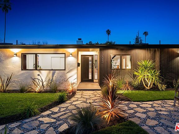 OFFERS DUE MONDAY 3/11 AT 5PM. Welcome to this stunning mid-century masterpiece, meticulously reimagined and fully remodeled to epitomize modern luxury while preserving the timeless charm of mid-century design. Nestled in the highly sought-after neighborhood of Valley Village, this 4 Bedroom 4 Bathroom residence, including 3 ensuite bedrooms and a permitted ADU, seamlessly blends sophistication with functionality, offering a lifestyle of unparalleled comfort and style. Step inside to discover an open-concept living space flooded with natural light, seamlessly connecting the interior with the well designed retreat of a backyard. The heart of the home is the chef's kitchen, a vision of contemporary elegance boasting top-of-the-line black stainless steel appliances, porcelain countertops, and sleek modern cabinetry. The spacious island provides the perfect gathering spot for friends and family, creating a central hub for entertaining. The living area, adorned with a fireplace and rich white oak hardwood floors, exudes warmth and sophistication. Vaulted ceilings enhance the sense of spaciousness, while carefully curated finishes and fixtures add an extra layer of luxury throughout the home. Retreat to the master suite, where tranquility and natural tones reign supreme. The ensuite bathroom is a spa-like sanctuary, featuring dual vanities with a limestone countertop and a step-in shower. A detached permitted ADU has also been reimagined with designer finishes, ready to be used as a studio or flex space from the main house. Beyond the interior, step outside to the meticulously landscaped grounds complete with a lap pool and fire pit for relaxing with friends on those colder nights. The outdoor living spaces are an extension of the home, offering a private oasis for entertaining, or simply enjoying the California sunshine. This fully remodeled mid-century home is not just a residence; it's a masterpiece of design and functionality. Don't miss the opportunity to make this exceptional home yours and experience the epitome of mid-century elegance in every detail.