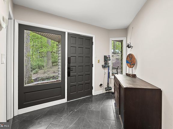 This absolutely stunning and newly renovated contemporary style home features luxurious details throughout tucked away in the trees on a one acre lot offering a peaceful and tranquil setting with outdoor entertaining spaces and a heated in-ground pool. Truly one-of-a-kind, this home boasts a recently renovated interior that blends sleek finishes with modern amenities. Every room has oversized windows with spectacular views of the woods that makes you feel one with nature. Prepare your favorite meals in the exceptionally updated kitchen that is fully equipped with premier stainless steel appliances, tile backsplash, stylish Cambria quartz countertops with a massive rainfall island that provides a casual dining area, soft-close cabinets, pantry and access to the rear deck and balcony overlooking the two-level solarium with year-round enjoyment. Off the kitchen, the spacious dining room is large enough to accommodate any size gathering and up a few steps is the extraordinary living room with a vaulted wood ceiling and a wood-burning fireplace that creates warmth and ambiance. Serenity awaits upstairs in the primary bedroom suite adorned with a vaulted ceiling and brand new private bathroom with a glass-enclosed walk-in shower and stairs leading to the loft with built-in shelving creating the ultimate walk-in closet. Another three bedrooms, a newly updated second full bathroom and a laundry room complete the upper level sleeping quarters. Head downstairs where the cozy family room is the perfect lounge space with a wood-stove and sliding glass doors to the solarium. The second lower level has an exercise room, office, storage room and a cedar closet. The third lower level includes an expansive recreation room with access to the rear patio. Step outside into your own private oasis with a two-tier deck, stone patio and heated in-ground pool that is made for entertaining or relaxing with outdoor speakers. This large lot provides ample space for outdoor activities, gardening, or simply taking in the scenic surroundings. Located in the sought after neighborhood of Woodmark situated on a premium lot at the end of a cul-de-sac. This home offers a luxurious lifestyle with easy access to nearby amenities. Don't miss your chance to experience the ultimate in contemporary living.