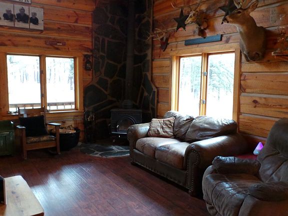 The incredible 4 bedroom log home ranchette has so much to offer!! With barns and sheds...you are all set to bring in your horse or chickens!! This home has so much character with split logs throughout and a cozy atmosphere!! 3 heat sources including a new furnace. Concrete bar on the huge patio is ready for entertaining!! Pond on the property and you are only a mile from NFS. All appliances stay including the HUGE refrigerator and freezer. Solid surface countertops and hickory cabinetry** Main floor living at its best!! Master bedroom and laundry are on the main level, along with 2 large living rooms**This home is definitely a show piece!!** Call today for more details!