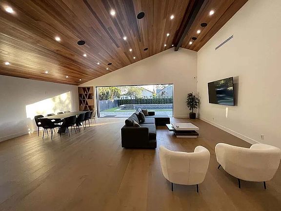 FULLY FURNISHED & FULLY EQUIPPED. Insurance companies & short term stays welcome. Located at 12354 Tiara Street in the desirable Valley Village neighborhood of Los Angeles, CA 91607, this newly constructed single-family home offers a blend of modern design and luxurious amenities. Built in 2023, the residence boasts 5 bedrooms and 6 bathrooms across approximately 3,500 sq ft of living space. Key Features: Bedrooms and Bathrooms: The home includes five spacious bedrooms and six well-appointed bathrooms, ensuring comfort and privacy for all occupants. Living Spaces: Designed with contemporary living in mind, the open-concept layout seamlessly connects the living room, dining area, and kitchen, creating an inviting atmosphere for both relaxation and entertainment. Kitchen: The chef-inspired kitchen is equipped with high-end Thermador appliances, including a 60-inch refrigerator and freezer combo, custom cabinetry, and a large central island, making it ideal for culinary enthusiasts. Outdoor Area: The backyard features a private pool and hot tub, complemented by a BBQ area, providing a perfect setting for outdoor leisure and gatherings. Additional Amenities: The property is a complete smart home, equipped with security camera systems and surround sound, enhancing convenience and entertainment options. Parking: An attached garage and spacious driveway offer ample parking space for multiple vehicles. This home combines modern design with functional living spaces and exceptional amenities, offering an unparalleled living experience in the heart of Valley Village. Turn Key property, just bring your suitcase and move in. *Brokers Commission welcome. Flexible Terms. Tenant pays all utilities.