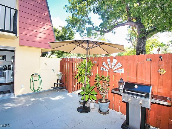 TURNKEY! Don't miss the opportunity to own this beautiful and well maintained 2 bedroom, 2 bath Townhome in the Parkwoods Community centrally located in the heart of Fort Myers. Upgraded kitchen with granite countertops, stainless appliances, and tiles/laminate throughout first and second floor. NEW ROOF and NEW A/C COMPRESSOR in 2024. The lovely private courtyard with a large secure storage shed - with electricity and large enough for possible motorcycle parking - and privacy fence can be accessed through sliders from the kitchen and living room. The lower level features a large storage/pantry area, nice laundry room and updated guest bathroom with additional shower. Prime location in community with lots of open space outside of courtyard area for added privacy! Two assigned parking spaces close to unit and amenities include a community pool for your enjoyment. Enjoy living in the heart of Fort Myers with quick access to downtown, Sanibel or Fort Myers beaches and shopping & restaurants. Currently no flood insurance required!