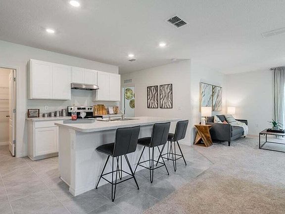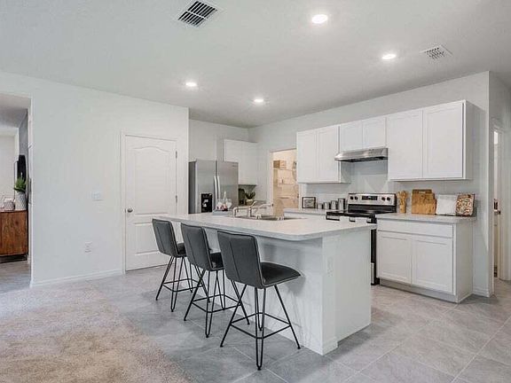 This all-concrete block constructed two story plan boasts five bedrooms, three full bathrooms plus a loft area. One bedroom and full bathroom is located on the main level. The open concept layout features a kitchen island, lots of natural light and a covered patio for grilling. Owners & secondary bath upstairs feature double sinks.