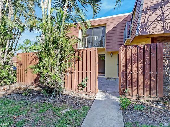 Welcome to the Parkwood townhouse community in the heart of south Fort Myers, close to everything. This cozy courtyard-style townhouse has been recently painted exteriorly and interiorly and is ready for its new owners! This spacious and updated unit has much to offer, such as two bedrooms, two bathrooms, tile flooring throughout (no carpet found), an electric fireplace for warm cozy nights, a newer A/C system that is professionally maintained, a newer water heater, and a new roof that was just placed in 2015. Upstairs you will find both spacious bedrooms with small balconies. This unit is over 1,200 Sq. Ft of living space. Outdoors you will find your private tiled courtyard ready for gatherings. A new fence door was just replaced and painted. This community has Low HOA fees, including lawn maintenance, exterior pest control, and trash removal. The community pool is just a few steps away from this unit. You have two assigned parking spaces. This excellent location is close to everything, including all the shopping centers and plazas, the bridges, US-41, FSW university, the RSW airport, downtown Fort Myers and just minutes to the beaches. Come and see this unit before it's SOLD!