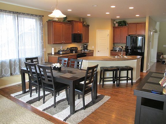 Only one year old, this exceptional two story in King Ranch Estates has 3 bedrooms, 3 ½ baths and expands over 3,900 square feet including 1,484 square feet in the full, unfinished basement. The vaulted entry has hardwood flooring that flows all the way down the hall and into the kitchen. There is a great formal dining room which could also be used as a study. The open kitchen has cherry cabinets with crown molding and upgraded hardware, black appliances, breakfast bar, eat-in space, walk-in pantry and recessed lighting. Cozy up to the gas fireplace in the vaulted family room. The main floor master suite has cove based ceilings, a huge walk-in closet, 5 piece bath with his and her sinks, oval soaking tub and oversized shower with built-in bench. On the main level you'll also find a powder bath with pedestal sink, a laundry room with built-in counter space plus a convenient storage/shoe bench just inside the garage door for easy access. Once upstairs you will find a large open loft plus the second vaulted master suite with 5 piece bath, double sinks, oval soaking tub and oversized shower with built-in bench and large walk-in closet. There is also a full bath with double sinks, a nice sized secondary bedroom plus an additional full sized laundry room. Great for future expansion is the full unfinished daylight basement with lots of windows. It is fully insulated with roughed-in plumbing and has a sump pump installed. The nice sized backyard has a Trex deck with a 10â?? x 10â?? fully enclosed, insulated and heated dog house, with windows and a doggy door. The three car attached garage has openers, key less entry and rafter storage. Other outstanding features of this home include: upgraded Craftsman doors and hardware throughout, security system, central air conditioning, sprinkler system, plus lots of other upgrades. Located in a great new DR Horton community with several parks and convenient location to shopping, schools and highways. Don't miss it!