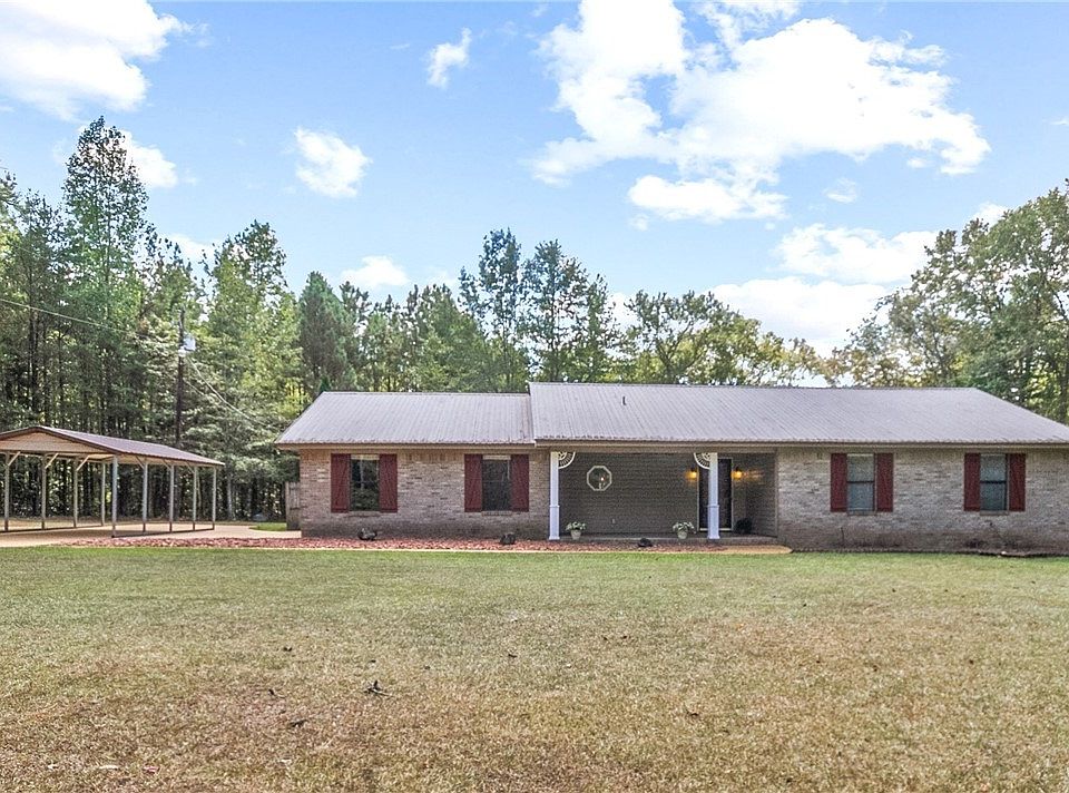 Custom built home nestled on approximately 4 acres in the Northside community - very serene setting. Ranch style full brick home has been well maintained and provides over 1800 square feet with 3 bedrooms and 2 full baths. Unique floor plan offers stained Cathedral ceiling in the great room, brick fireplace with Wood Stove, built-in bookcase adjacent to fireplace -galley style kitchen with porcelain sink, breakfast area overlooking fenced back yard and additional shed/workshop. Horses allowed; chicken coop and horse stall on site. Large Bonus room (previous garage remodel) has pool table and built-in cabinetry for games, gear and generous storage area. Large covered patio out back and plenty of area for cookouts and family gatherings. Call today to preview this exciting new listing.