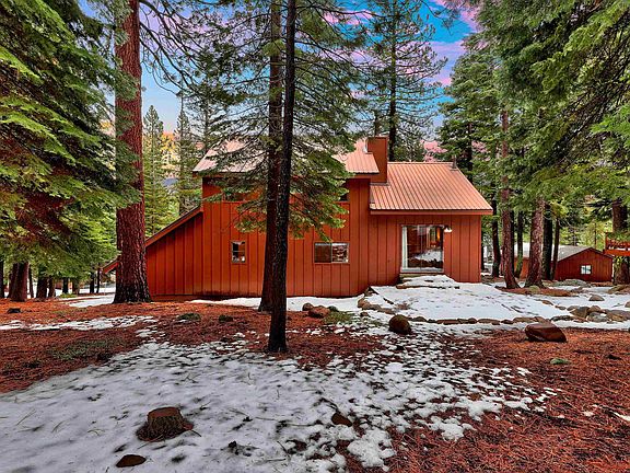 Lovely setting on gorgeous Telemark Place offering a very private setting on .44 acres with serene forest views bordering adjacent greenbelt. Connect to the world class Tahoe Donner trail system from your backyard! This lovely cabin has soaring ceilings in the dining and great room which opens up to a patio backing to the treed setting, then down 3 steps to the Kitchen, Primary Suite and Laundry. Upstairs offers 2 more bedrooms, a guest bath and loft. Lots of big windows to bring the outside in. This home was originally built by the current owners, who have loved the memories made here over the years!