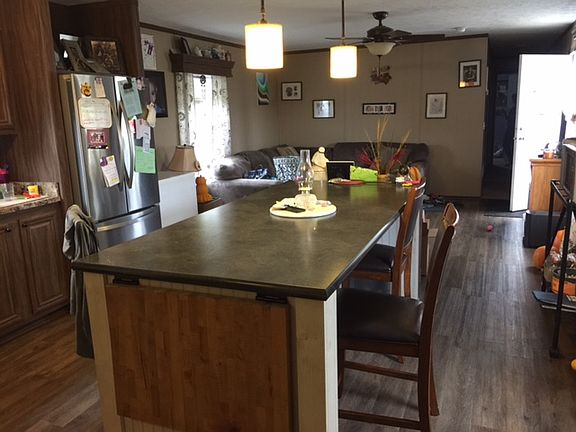 Very nice 2013 display model single wide home. Features open concept kitchen/living area with vinyl planking flooring. 3 BR, 2 full BA including Master BA, laundry room. Includes a safe porch with a storm shelter.