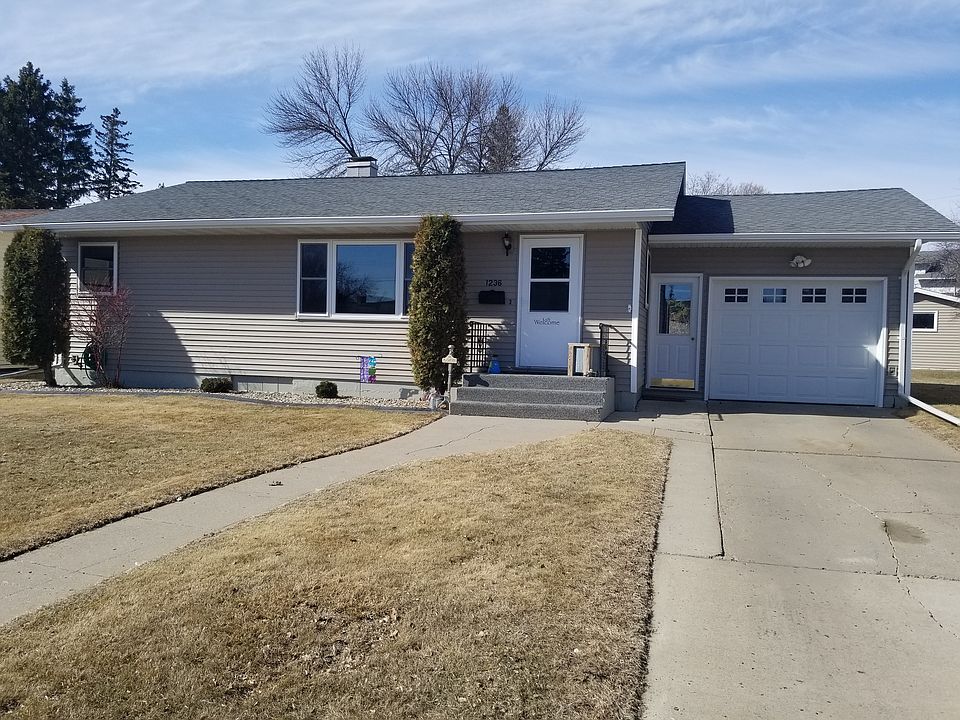 Beautiful single family home in a quiet neighborhood! 3 bedrooms on main floor along with full bath. Basement is half finished with another bedroom (no egress) and 1 full bath. Unfinished half of basement is in great shape lots of room for storage, along with egress window for possibility of another bedroom. Lots of new upgrades in 2010 that include carpet, dura ceramic tile, bathroom upstairs, windows throughout the upstairs, along with egress put in basement. Siding and shingles done on house and shed. Beautiful private backyard with lots of space to entertain or relax. Large shed on concrete slab with electricity. If your interested Please call 701-215-3537