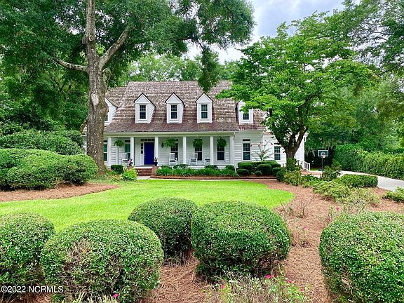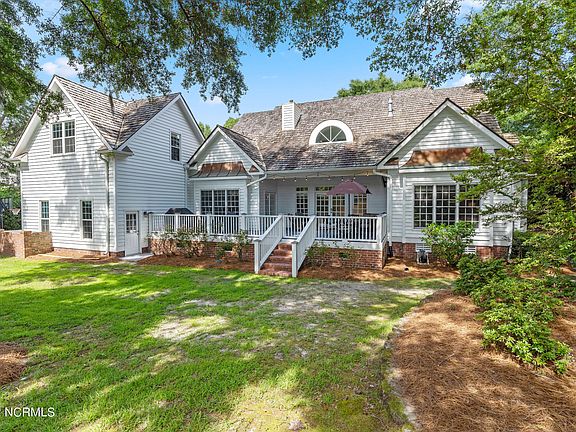 Southern charm abounds from this classic Landfall home situated on the 7th hole of the Pete Dye golf course. The curb appeal is truly unmatched. Whether spending time on your covered front porch overlooking a beautifully landscaped yard, or enjoying company on your large backyard deck with golf course views, you are sure to fall in love with this gem of a home. Inside, you will find an abundance of first floor living space including a large master suite with a remodeled master bathroom, a home office space, formal dining room, laundry room, and open kitchen flowing into a bright and airy 2-story great room. Upstairs you will find three more spacious bedrooms each including en suite bathrooms that have been recently updated. A private loft convenient for use as a home gym or a children's playroom is also located on the second floor. This lovely home has been meticulously cared for and updated with all new hardware, lighting, paint, carpet, crawlspace dehumidifier and so much more. Come experience southern living at it's finest.