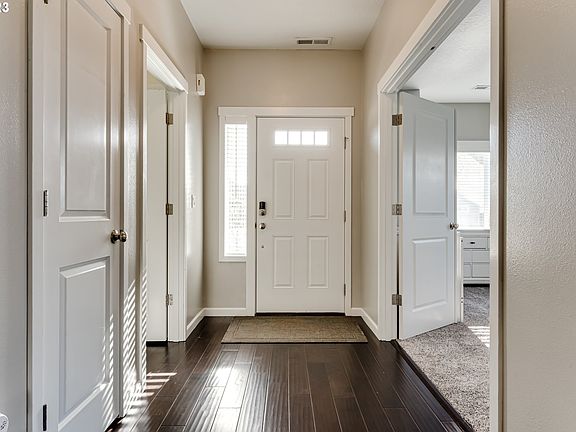 Rare, newer construction home on a large, .24 acre lot in a prime location, with close proximity to restaurants, shopping, schools, hospitals and Autzen Stadium! Fabulous floor plan with great separation of space. The primary bedroom suite, laundry room and office (possible 5th bedroom) are on the main level and there are 3 additional bedrooms, a full bathroom with double sinks and a family room upstairs. The main level has an open floor plan and features a gourmet kitchen with a 5-burner gas cooktop, double ovens and large walk-in pantry. The primary bedroom suite has a walk-in closet, bathroom with double sinks, a walk-in shower, soaking tub, heated tile floors and access to the covered patio. The large, sunny, fully-fenced yard features a 15' x 7' storage shed, garden beds and a covered patio; great for year-round entertaining! Additional home features: RV parking, an extra deep garage with epoxied floors and abundant storage, smart thermostat and smart irrigation systems and high-speed Cat-6 Ethernet wiring throughout. Brand new carpeting & fresh interior paint make this move-in-ready home truly shine!