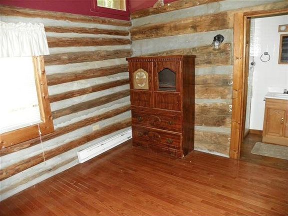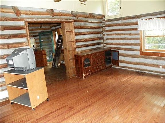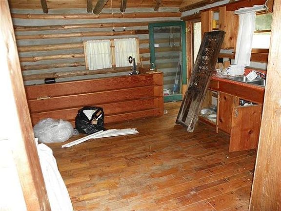 Foreclosure selling less than tax value. Cute home with finished bedroom & bath in basement (Height is only 5.5 feet). Workshop in basement also. Good views from the open deck behind house. Addition to old log home is unique with addition blending into log home nicely. Great home for the vacationer or starter home.Pegged wood floor in old cabin and wood flooring in main level. Covered front porch. Large living area on main level. Selling AS IS. Prequalify letter with offer and special documents to be added to contract. Contact agent for details.