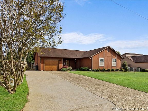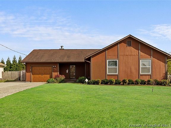 Great starter home convenient location to Bragg.Freshened up with new carpet,paint. Cleaned and move in ready. Kitchen features nice stainless steel appliances. Living room features a wood burning fireplace. Screen sun porch is a great place for your patio set and entertaining bug free. Primary bedroom features a large walk in closet, and bath with dual vanity,sep shower and jetted tub. Two other guest rooms share a hall bath. Large laundry room comes with washer and dryer not warranted. Office right off the dining area perfect for a homework area or office if you are working from home.Out back you have a large wired workshop garage perfect for a hobby,motorcycle or whatever your needs are.Come see this home quickly and put in your best offer.