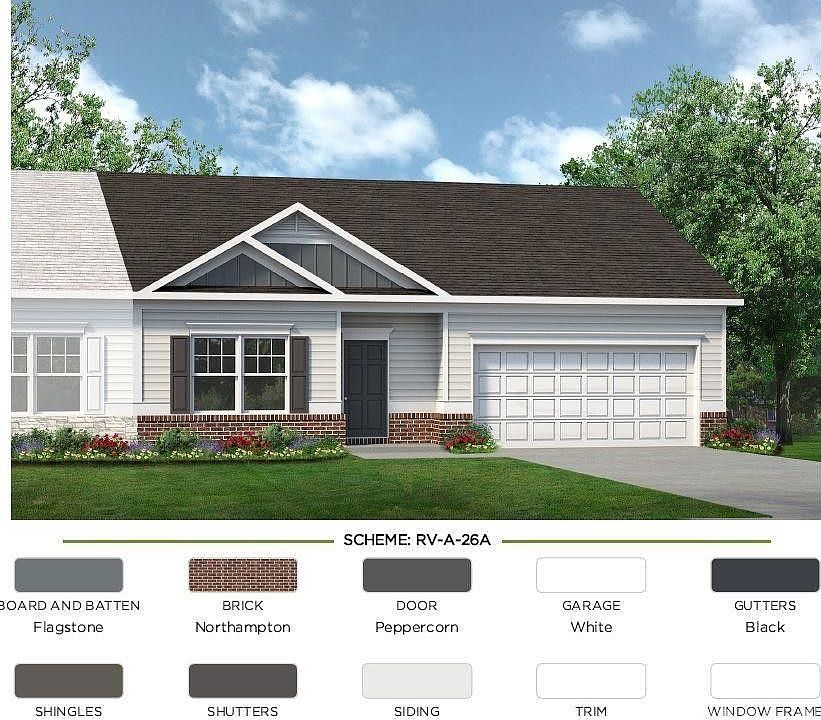 This attached Fairmont ranch plan by Smith Douglas Homes at Drake Estates will be ready by November 2022!. This 3 BR, 2 Bath ranch features a floating island in the Kitchen, open to Breakfast and Family room, quartz kitchen countertops, gorgeous 36" cabinets, backsplash, cultured marble bathroom countertops, oversized shower and walk-in closet in Master Suite, luxury vinyl plank flooring in main living areas, SS appliances, ceiling fans, privacy blinds, designer paint throughout and private rear patio.