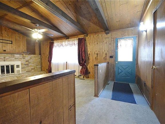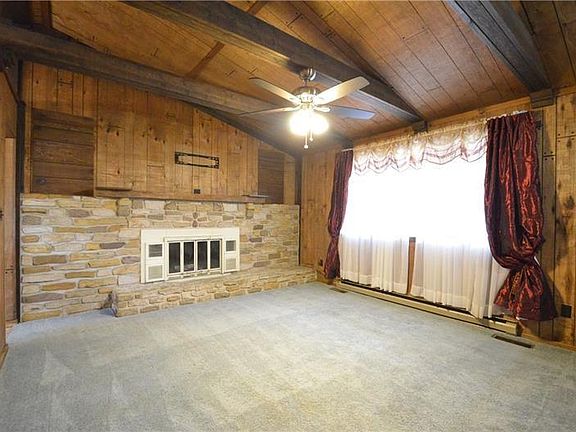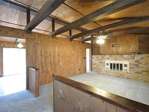 Welcome to the peaceful surroundings of this spacious well cared for ranch home set on 1.67 wooded acres. The drive takes you back to large parking area & attached garage. Large level backyard backs into woods that includes access to a stream surrounded by trees. Enter from the covered front porch into a vaulted great room featuring beamed ceilings, picture window & raised hearth stone fireplace thick wood mantle. Spacious eat in kitchen offers vaulted beamed ceiling, stove, refrigerator & slider to backyard. Master bedroom boasts beamed ceiling, double closet & private half bath w/new vanity, floor & commode. Second bedroom has wood beamed ceiling. All 3 bedrooms have ceiling lights & lighted closets. Hall bath has new floor, commode & paint. The air conditioning, hot water tank & chimney have been recently serviced, all in good working order. This one level home is close to highways,yet very much in the country!