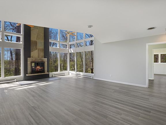This home is truly an oasis nestled in the woods. Located on four private wooded acres on Jericho Mountain in the heart of Bucks County, this Frank Lloyd Wright-esque home will help you get away from it all. Approach the home through a long private drive and watch as this home appears out of the woods before you. Enter the home and you are surrounded by huge windows and towering views of nature. The Great Room is the centerpiece with a huge wood burning fireplace that rises two stories and is flanked by windows. Above is a loft and sitting area great for an art room, yoga studio or hang out. The first main suite is located on the second floor just off the loft. Back on the main floor is the second main suite with a full bath. Opposite this room is the Kitchen with a window wrapped breakfast room and access to the side yard. Next to the Kitchen is the Dining Room with sliding glass doors that lead to the deck for outdoor meals or relaxation. The lower level features a possible bedroom with half bath, Laundry area and plenty of storage with walkout access to the driveway. Back outside, take in the grounds and relax among the trees. The new owner has painstakingly rehabbed the home and grounds for its new inhabitants with new roof, complete repainting of every inch of the interior and exterior, new flooring throughout and new doors. Add to that a generator for peace of mind and a whole house fan for cost effectiness and this home is move in ready.Close to Doylestown Boro, New Hope and Newtown with a short drive to both New York and Philly. Make your appointment today. Zillow is incorrect, there is no pool, heat is electric baseboard Tenant pays heat, hot water, electric, AC, Trash, cable, snow removal and renters insurance No smoking , Dogs on a case by case basis. $30 fee for background, credit check