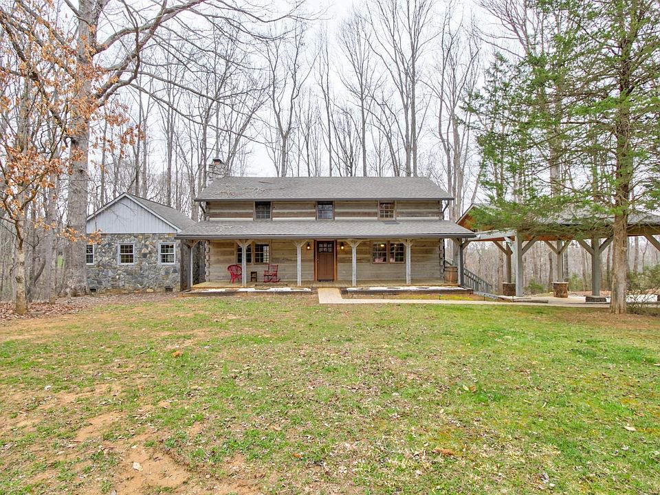 Hearthstone Log Home on a Over 2 Acre Private Wooded Lot! Stunning Hewn Douglas Fir and Western Hemlock Logs, Corner Logs are Dovetail Notched, 2 Inch Thick Tongue & Groove Oak Floors with Walnut Pegs, Exposed Interior Log Walls & Hewn Beams Overhead. All of the Timbers, including Ridges, Porch Posts & Beams are Hand Hewn. Newly Added Main Level Master Suite, and 2nd Level Master Suite! Stone Fireplace in the Living Room! Open Family Style Kitchen with Pantry, and Pine Cabinets! Full Unfinished Walk-Out Basement! Covered 8'x40' Front Porch, Screened 10'x40' Rear Porch, Large Level Front Yard, Beautiful Trees! , Located on the Cul-de-Sac, Great Neighborhood. Recent Upgrades Include Garage Door, Gutters, Carport Parking, and Paved Driveway! Rare Find in Bedford County! Come See!