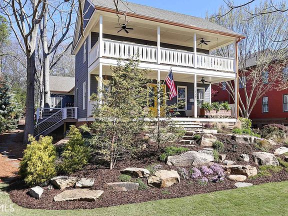 Exquisite grace and charm in this modern day Norman Rockwell neighborhood. Upper and lower deep front porches run the length of the home welcoming guests and providing a wonderful place to enjoy life. Updated take on the take on the enduring four-square architecture with elegant formal spaces in the front of home and an open plan in the back on home where kitchen overlooks casual dining and keeping room and opens to even more porch space! Master on main with crisp black and white master bath. Carriage house / Au pair suite above detached garage. Must act quickly on this home!