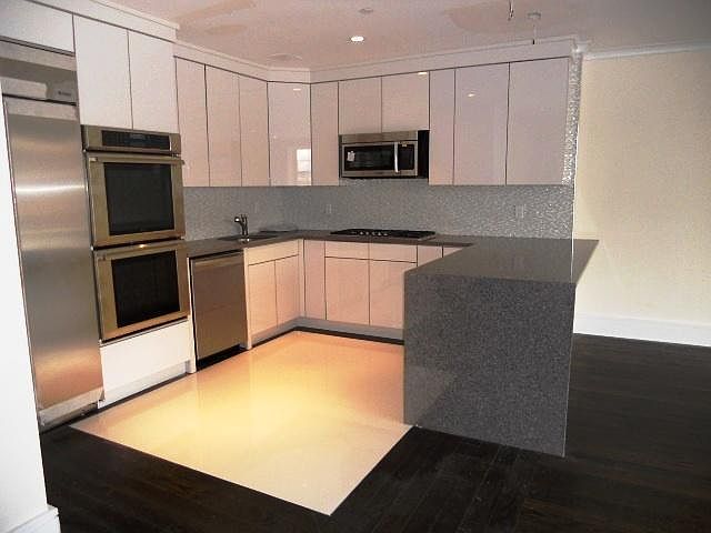 Spacious 3 bedroom luxurious finishes. Large open living area with ample space for a full dining table. Gorgeous Italian lacquer kitchen with high end appliances. Large master suite with amazing onyx ensuite bath. Two additional large bedrooms , plus a second full sized classic marble bath. Washer/dryer already in unit, central heat. Tenant pays all utilties. Indoor Parking Included. The building has part time doorman, shared patio area, Diplomats welcome!!