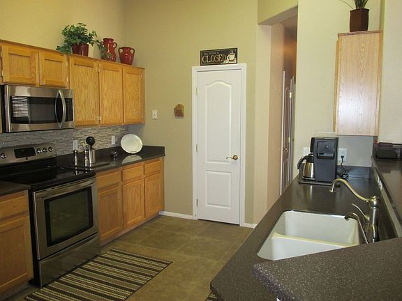 Welcome home to this beautifully upgraded, immaculate 1690 S.F. Sunset Greens townhome. This popular, open floorplan features a centrally located kitchen, 2 BR, 2BA,office/den/3'rd BR and attached two-car garage. The list of upgrades in this home include 20" custom tile, stainless steel appliances, tile backsplash, wood blinds, solid surface kitchen counters w/undermount sink, custom paint and light fixtures, French doors to the patio, epoxied garage floor, Maytag Epic Z W/D, and brick paver patio. As a homeowner in this lovely gated community, you will enjoy the beautifully landscaped grounds, two pools/hot tubs, front and backyard maintenance, and discounts at the Casablanca Golf Club and Resort. This home represents a great value and Mesquite townhome living at its best.