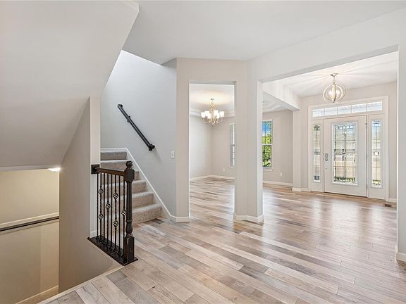 IGNORE DAYS ON MARKET, AS THIS ONE JUST HAD AN INTERIOR COSMETIC REFRESH IN MAY 2024…TAKE ANOTHER LOOK, Freshly Painted thru-out & New Carpet! STUNNING 1.5 Sty offers 4 Bdrms, 2.5 Baths, 3-Car Garage & Finished Lower * 9' Ceilings, Wood Veneer Flrs & SOARING 12' Ceilings thru Kitchen, Breakfast & Great Rm * Dining Rm/Home Office * Fall in LOVE with the Kitchen featuring 42" Taupe Shaker Cabinets & GRANITE, OVERSIZED Island, STAINLESS: Gas Cooktop w/ Hood, Built-In Oven & Micro, Dishwasher & Refrigerator * See-Thru Gas FP from Great Rm to Master w/ DUAL WALK-IN CLOSETS and Luxury Bath w/ Adult Height Double Bowl Vanity, Separate Tub & OVERSIZED Shower * Powder Rm & MFL * Upstairs Bonus Area & 3 Add'l Bdrms w/ Jack-N-Jill Bath...Private access to Bed 2 w/ Walk-In Closet & Hall access for Beds 3 & 4 * HUGE L-Shaped Rec Rm in lower provides endless options, rough-ins for wetbar & full bath plus egress window * Low-Rise Composite Deck & Lawn Irrigation...BACKS TO TREES plus Large Sideyard!