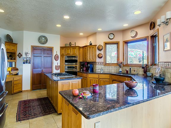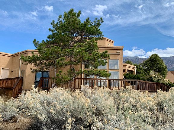 Spectacular views from inside and out of this stunning, updated Sandia Heights home on 3/4 acres! So many updates over the last few years...over $60,000 in BAC single ply 50 mil membrane roof, skylights and owned solar PV modules. Not to mention the porcelain tile flooring, granite counters, updated kitchen appliances and more! Open area/arroyo behind affords opportunities to view wildlife and easy access to Elena Gallegos and the foothills. Welcoming floor plan with abundant natural light, you'll enjoy entertaining or everyday living in the family/kitchen/breakfast nook that draws you out to the wrap-around deck with views in every direction. Private master suite upstairs, plus 3 downstairs bedrooms with en-suite baths and oversized 3 car garage...this is the one you've been waiting for!