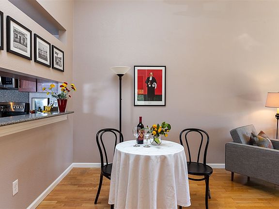 Located in the beautifully well kept community of South Villa Condominiums, just west of Walnut Creek downtown, this top floor, end unit will not last long! Enjoy the vaulted ceilings and hardwood floors of the spacious living room while sitting beside the fireplace. Sunny afternoons are wonderful on the balcony overlooking palm trees and the sparkling pool. The vaulted ceilings make the master bedroom feel enormous and was recently upgraded with wool carpeting, Hunter Douglas window coverings, and mirrored sliding closet doors. Kitchen and bathroom have been upgraded with vinyl tile flooring. The comfortable, contemporary kitchen with pass through window connected to the dining area boasts granite countertops, shaker style cabinets and new stainless steel appliances. Stackable Washer and Dryer are included in unit! Walkable to Walnut Creek downtown shopping, dining, and movie theater. Olympic Blvd connects directly to HWY 680 & 24. Low HOA dues.