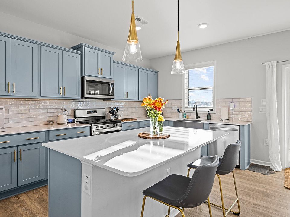 Welcome to this stunning two-year-old Everly home, offering the perfect blend of modern comfort and timeless style. Perched to overlook the western part of the neighborhood, this property is bathed in spectacular natural light throughout the afternoon and evening—creating a warm, inviting atmosphere in the kitchen and living room where sunlight simply pours in. With 2,451 square feet of living space, this home features 4 bedrooms, a contemporary open layout, and a chef-inspired kitchen complete with sleek white cabinetry, stainless steel appliances, a large island, and stylish, up-to-date fixtures--the living room and kitchen are filled with a wonderful amount of natural light, even on cloudy days. It's the ideal setup for both entertaining and everyday living. Upstairs, you'll find an oversized primary suite with a spa-like en suite bathroom designed for relaxation. Three additional spacious bedrooms provide plenty of room for family, guests, or even a home office. Step outside to enjoy a covered patio and a backyard fenced with 5' aluminum fencing, perfect for gatherings, play, or simply soaking in the gorgeous sunset views--you'll have a view of almost the entire neighborhood. The HOA is soon adding entrance signs to the neighborhood as well, along with ''pocket parks.'' And the location couldn't be better! You're just minutes from Joyner Park, Luddy Park, downtown Wake Forest, and downtown Youngsville, with easy access to Highway 1 shopping and dining. This is more than a house—it's a lifestyle. Don't miss your chance to call this Everly jewel your home!