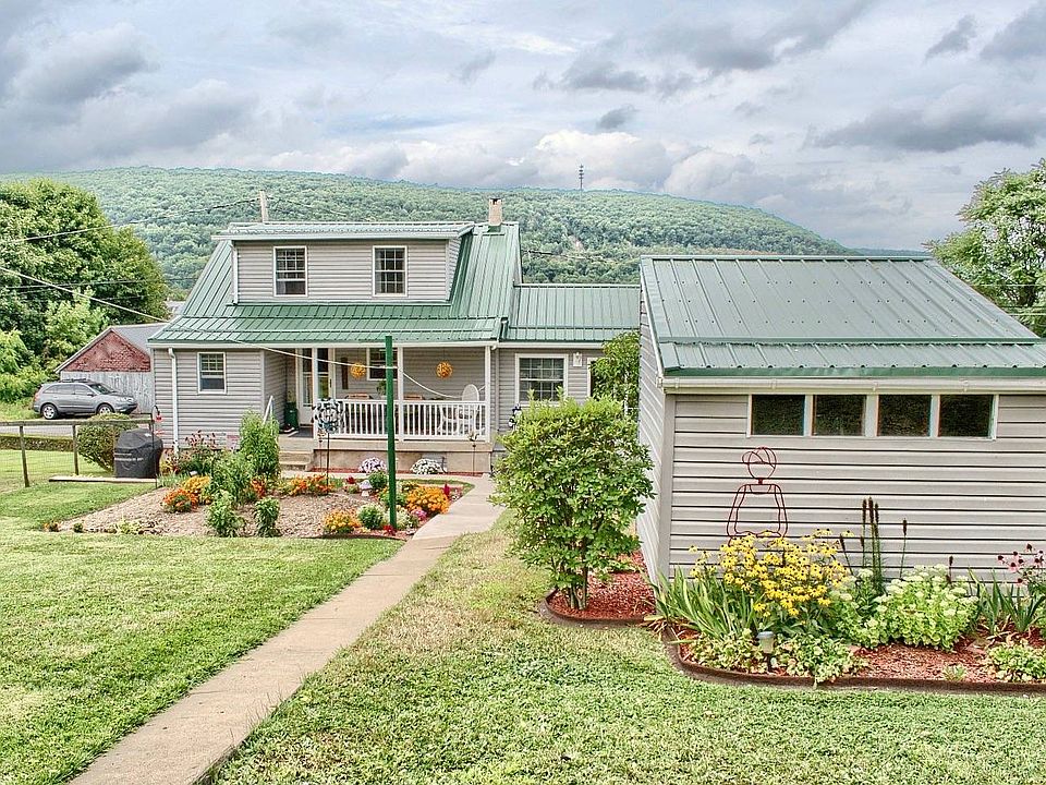 NOT A THING TO DO upgrades galore in this Beautifully cared for home in the WEST END with a pristine manicured lawn, new metal roof, maintenance free exterior, and SO much more! You will feel right at home as you enter the bright Sunroom with views and cozy fireplace. The new kitchen features Quartz counters, tongue & groove ceilings and hickory cabinets. Laminate floors in living room and dining room with 2 sets of french doors, one leading to a full front porch with mountain views. The generous sized fenced yard features a shed & garden, relax on your back porch and take in the mature landscaping. All the appliances stay too ! 1 car oversized integral garage . Make your appointment to see this lovely home today- Seller occupied- notice to show a must.