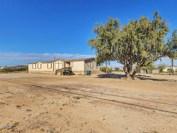 5-bedroom, 3- bath, Must See! This beautiful, manufactured home sits on a 2.59-acre corner, conveniently located near Hunt Highway, stores, restaurants, and a high school. Open and spacious floor plan includes formal and family living rooms, with all bedrooms having large closets and accessible bathrooms. The master bath includes a deep tub and a walk-in shower. The 4th bedroom is off the master and is ideal for an office or nursery. Our metal building is electrically wired, plus a separate power pole with RV connections and a septic RV clean out. The lot is fenced, graded, and ready for a horse set-up, RV, boat, toys, or you can build a house if desired. There are citrus trees, a small animal -fenced corral, and a shaded tree.