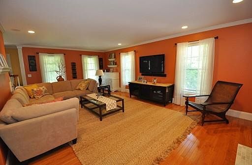 Mint 2004 Custom Colonial. Private setting. Open floor plan with room for all. Three bedrooms, awesome master suite with built-ins, walk-in closet and master bath with jetted tub. Fully applianced kitchen, dinette, formal dining room, bonus room, Living room with fireplace and gleaming hardwoods throughout. Custom crown molding. Beautiful porch and deck overlooking large fenced in yard. Oversized two car garage.