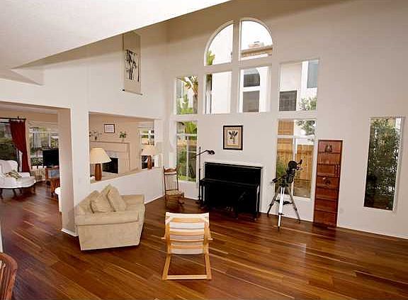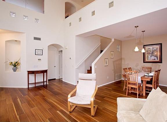 Beautiful and sunny twin home in the heart of Carmel Valley, minutes from Del Mar beach and freeways. Open plan with high ceilings, spacious living/dining area, and a family room that opens to a granite-top kitchen. Gorgeous Brazilian teak hardwood floors. All bedrooms are upstairs, including a large primary suite with walk-in closet. Private backyard and an attached two-car garage. It's right in front of the community park. Walk to top schools, shops, and restaurants.
