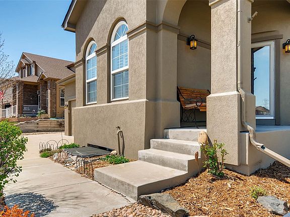 Absolutely gorgeous updated home in Castle Pines! The seller has lovingly upgraded this home so all you have to do is move in and enjoy! Newer exterior paint and class 4, hail resistant roof. The large rear deck is perfect for entertaining, and the table & chairs and umbrella stay with the home. Inside, the kitchen cabinets, granite, bathrooms, paint, flooring and so much more has been upgraded. The master suite has a sitting room with a cozy gas fireplace, and the master bathroom had a heated floor installed during the remodel. The over-sized garage has room for everything and the work bench and much of the storage solutions will stay as well. The front living room may be used as a study, library or living room. The sellers enjoy the views of the open space from both the front porch and back deck, views that include sparkling lights at night, and occasional elk during the day. There's too much to list here, but you won't be disappointed! Flexible possession - don't delay!