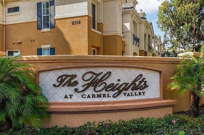 Quiet top floor corner unit with open concept kitchen and bonus room in The Heights, a resort like gated community in the heart of Carmel Valley, convenient to new shopping center One Paseo, award-winning Del Mar School district, library & more. See below. The Heights at Carmel Valley is centrally located in Carmel Valley with award-winning top rated schools including Del Mar Unified Elementary School and Torrey Pines High School, plus Carmel Valley Middle School is a few steps away! This gated complex features resort-style amenities with luxurious pool, spa, BBQ area, fitness center & clubhouse. Amazing location close to Del Mar Highlands shopping center, parks, The Bay Club, Carmel Valley Recreation Center, and easy I-5 and 56 freeway access. This popular 2B2B has a bonus room that could be used for a dining room or an office, or convert to a 3rd bedroom. This top floor corner unit offers spacious 10' ceilings with plenty of natural light, large patio, full size laundry closet inside, cozy fireplace in living room, walk-in closets in the bedrooms. It has 2-car garage plus 3rd designated parking spot! Please TEXT to schedule viewing.